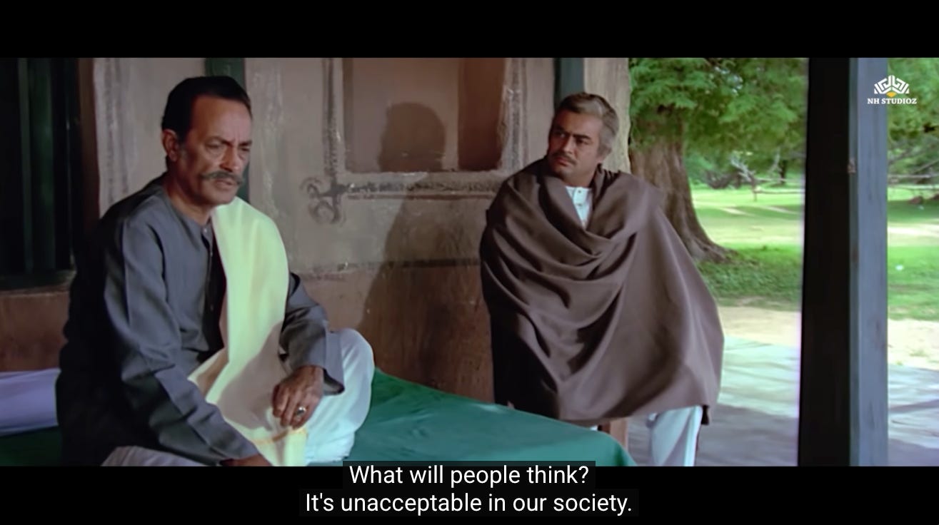 Thakur reminds Radha’s father that the purpose of society was not to isolate.