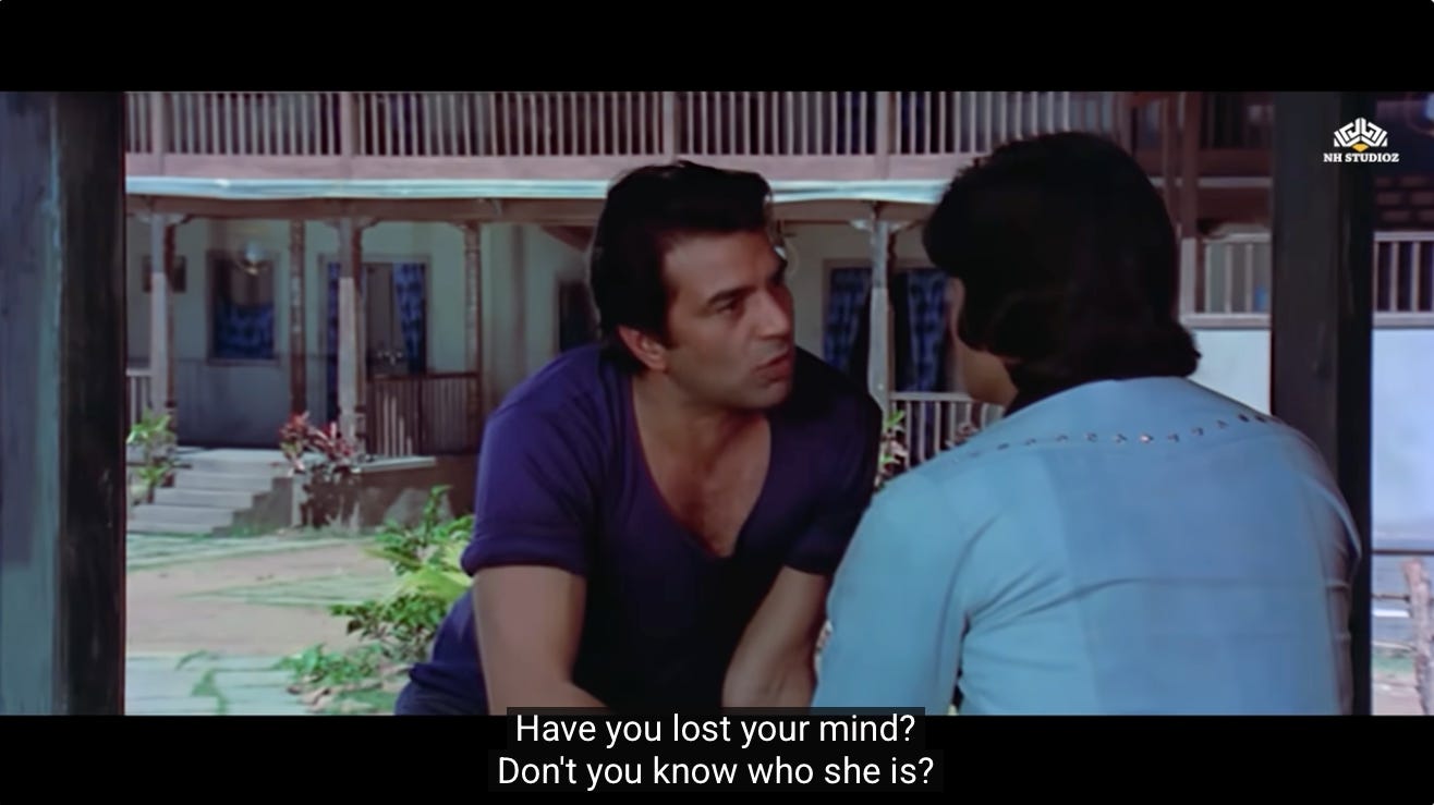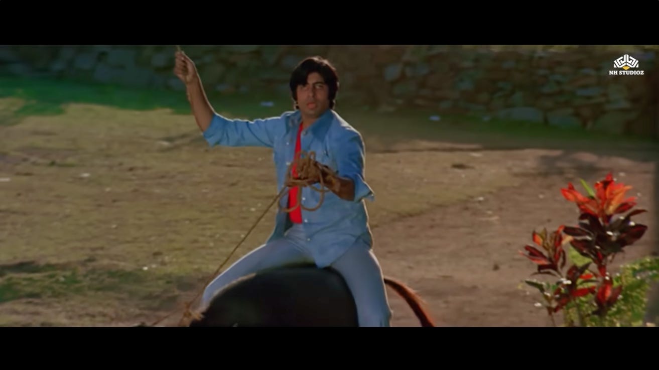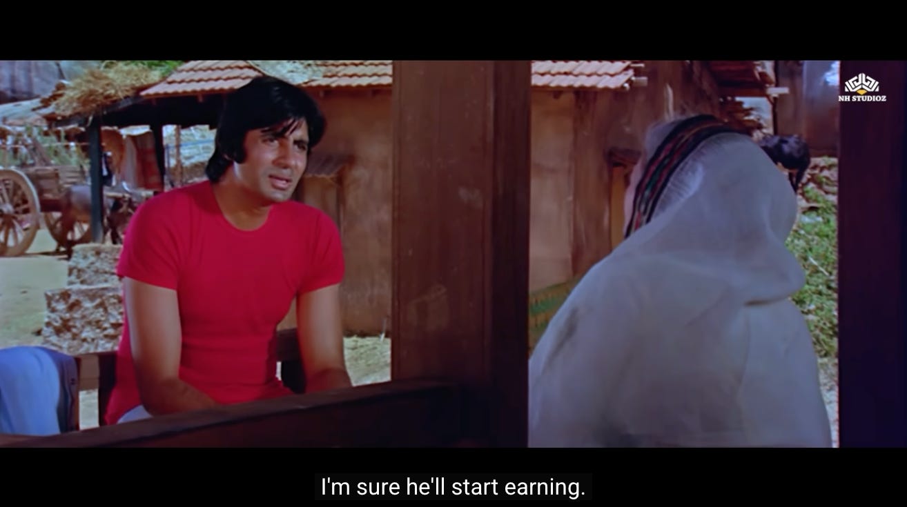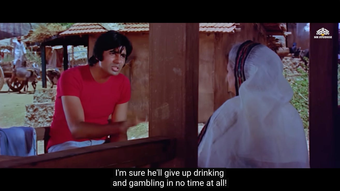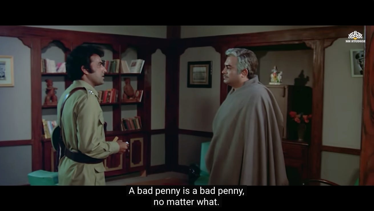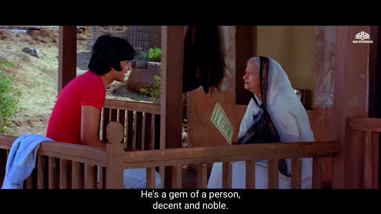 This is the first moment where we see a shift in Jai and Veeru, and their decision to not go back to being petty thieves. Perhaps they realize that Thakur’s assignment represents the second chance they were never given.