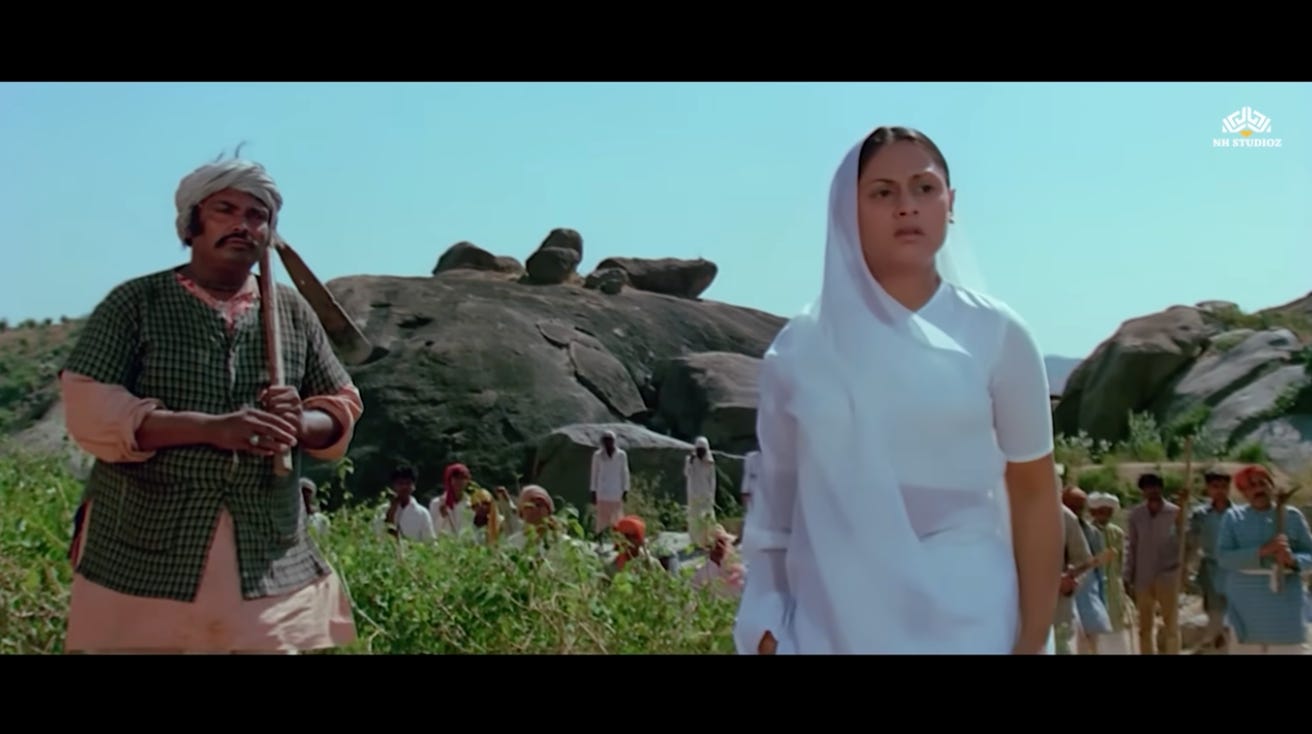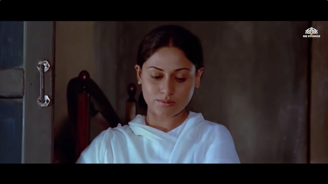 The fact that we are not shown Thakur coming to accept this indicates that in the earlier scene, when Radha rushed to the courtyard upon hearing of Jai’s gunshot wound, Thakur’s expressions showed that he had come to the realization that Radha also deserved a second chance.