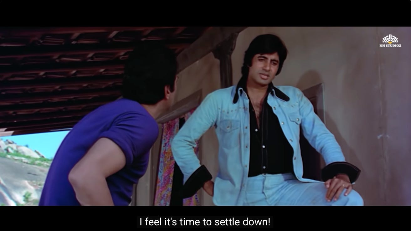 In the very next scene, Jai and Veeru are shown making plans to settle down in the village.