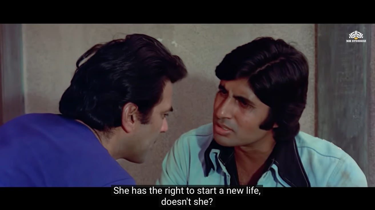 Do people deserve a second chance? They may be at fault, and even criminals like Jai and Veeru, or like Radha, who are suffering for no fault of their own.