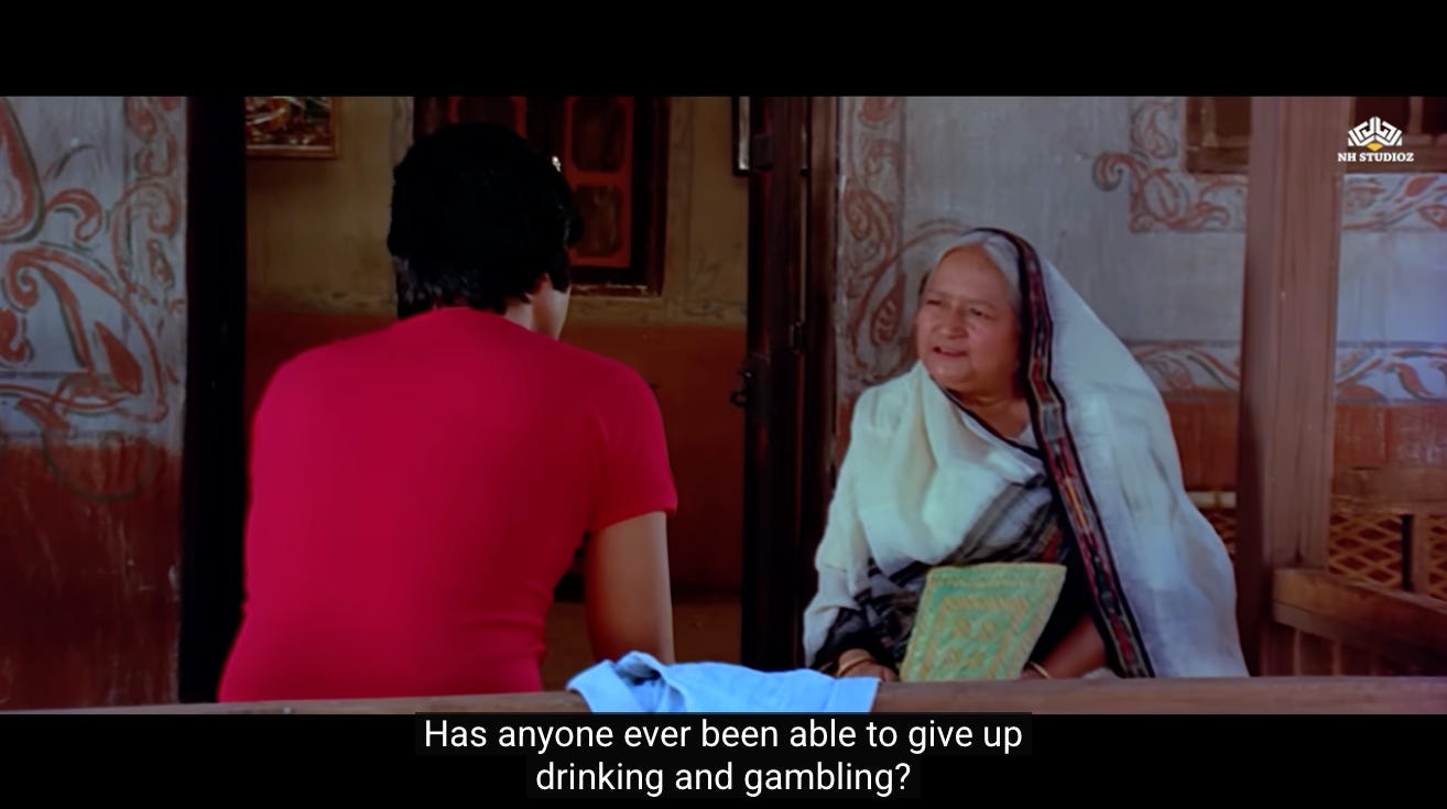 If they are given a second chance, can they overcome their default tendencies (being petty thieves like Jai and Veeru) or their disposition that is a result of the suffering that is forced upon them (like Radha)?